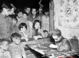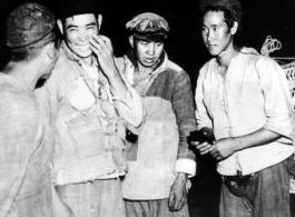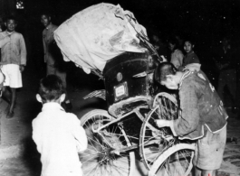 Tian (田) family and cargo on a US Army Service of Supply (SOS) unit's boat (serial #1022c; 美军供应处运输船) during WWII. The boat is registered to Tian Jinsheng (田金圣).