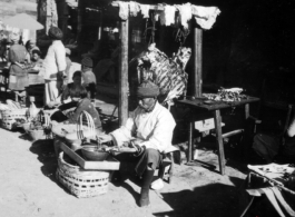 Pagoda in Dali, Yunnan province, China, during WWII. This is one of three pagodas within a single walled compound. The compound a had been appropriated for use by Nationalist troops. Later, after the communist revolution, the compound was also used by troops, but by PLA troops. See the whole compound and all three pagodas here.